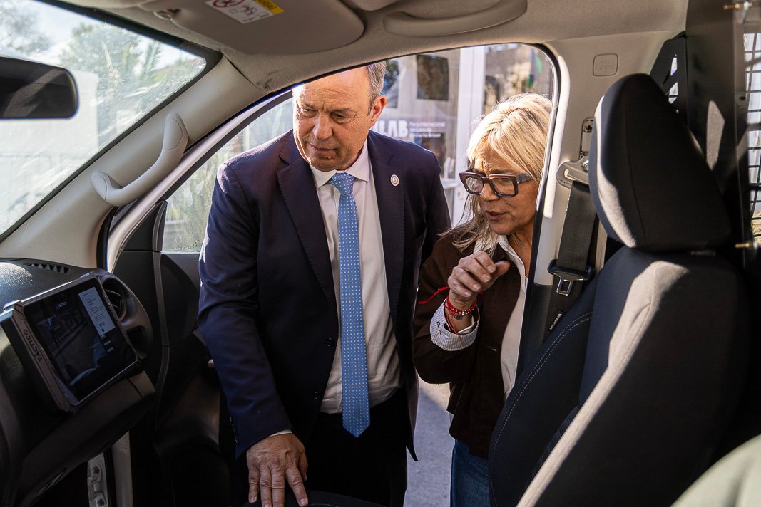 El intendente Mariano Cascallares y la secretaria de Prevención y Seguridad Ciudadana, Paula Eichel, presentaron los primeros cuatro móviles de la Policía Bonaerense equipados con esta tecnología que permite leer en tiempo real los dominios de los vehículos que circulan a su alrededor en las calles y avenidas brownianas e identificar aquellos que tengan pedido de secuestro.