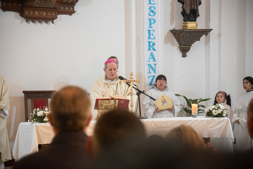 La celebración se realizó en el marco de una parroquia renovada -la más antigua del distrito, construida en 1872-, donde ya se completaron gran parte de las obras de restauración que alcanzan un 85 por ciento de avance, las cuales incluyeron la reparación del campanario, revoques, cielorrasos y paredes.