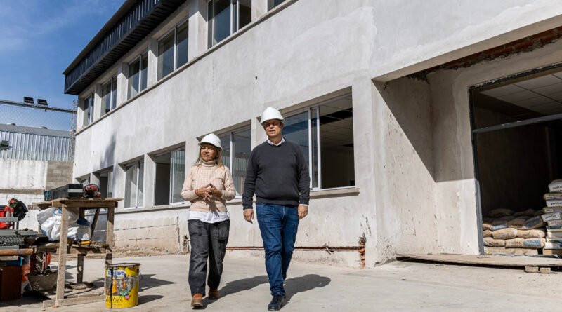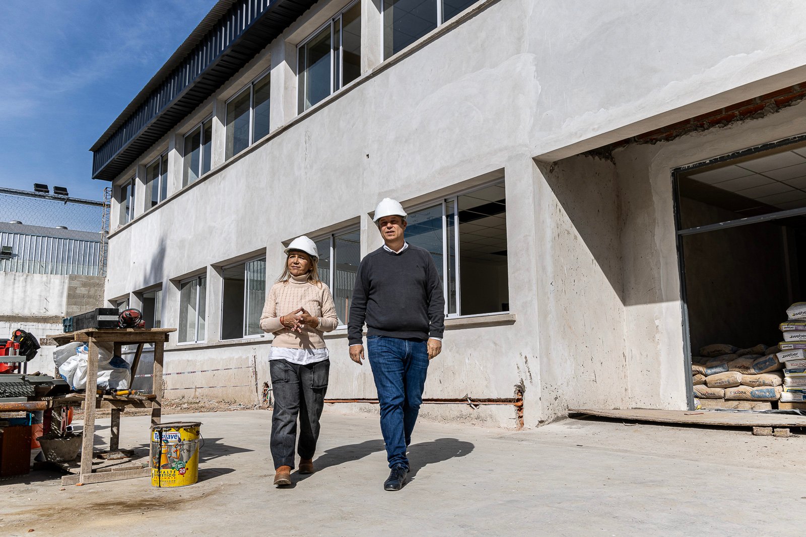 El intendente de Almirante Brown, Mariano Cascallares, y la secretaria de Prevención y Seguridad Ciudadana, Paula Eichel, recorrieron los avances en la construcción de un nuevo establecimiento educativo en la localidad de Longchamps, donde funcionará la Escuela Secundaria N° 76.