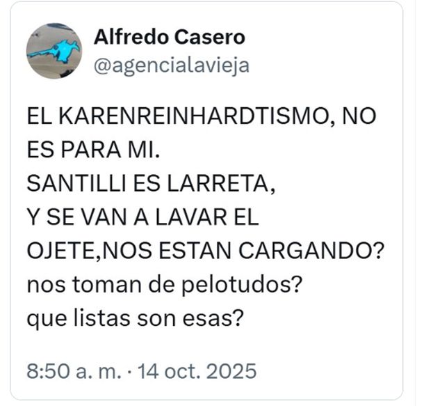 Duro posteo de Alfredo Casero contra la lista de LLA en Provincia: “¿Nos toman de pelotudos?”