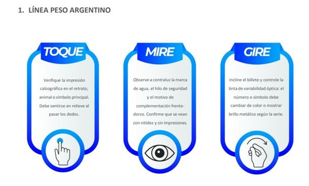 El gobierno de Javier Milei elaboró y difundió este jueves una detallada guía para la detección de billetes falsos de pesos, dólares y euros que será utilizada por las fuerzas policiales y de seguridad federales del país. Así quedó plasmado en la Resolución 1240/2025 del ministerio de Seguridad de la Nación publicada hoy en el Boletín Oficial con la firma de Patricia Bullrich.
