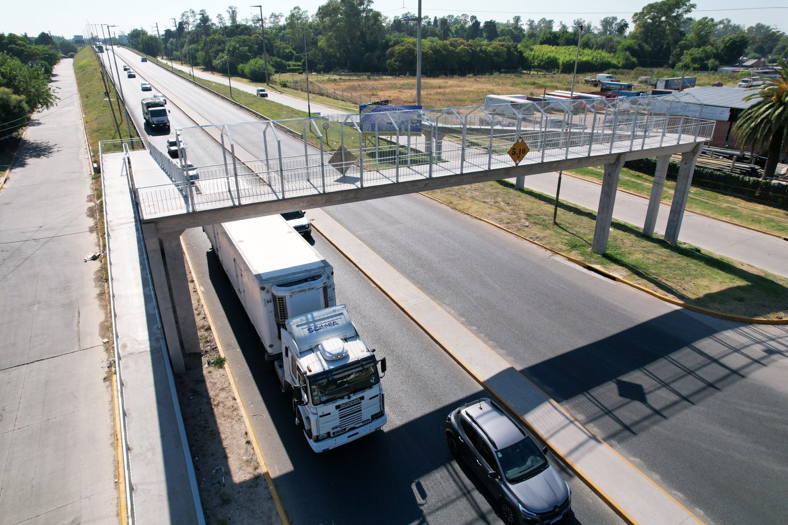 La estructura, construida en hormigón, cuenta con una altura de 5,30 metros -superior a la del Viaducto Papa Francisco- lo que permite una circulación segura de todo tipo de vehículos de gran porte.