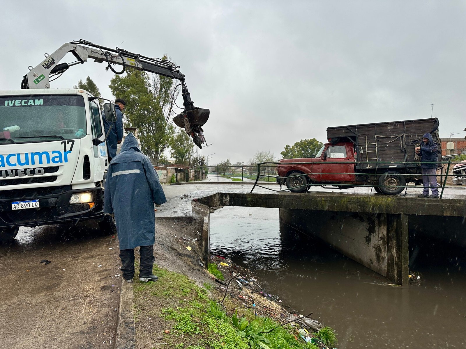 “Estamos trabajando fuertemente para mitigar al mínimo los efectos de las fuertes lluvias que afectan a toda la región, dando respuesta en los barrios y profundizando los trabajos que realizamos todo el año de limpieza y desobstrucción de cursos de agua”, destacó el intendente Mariano Cascallares.