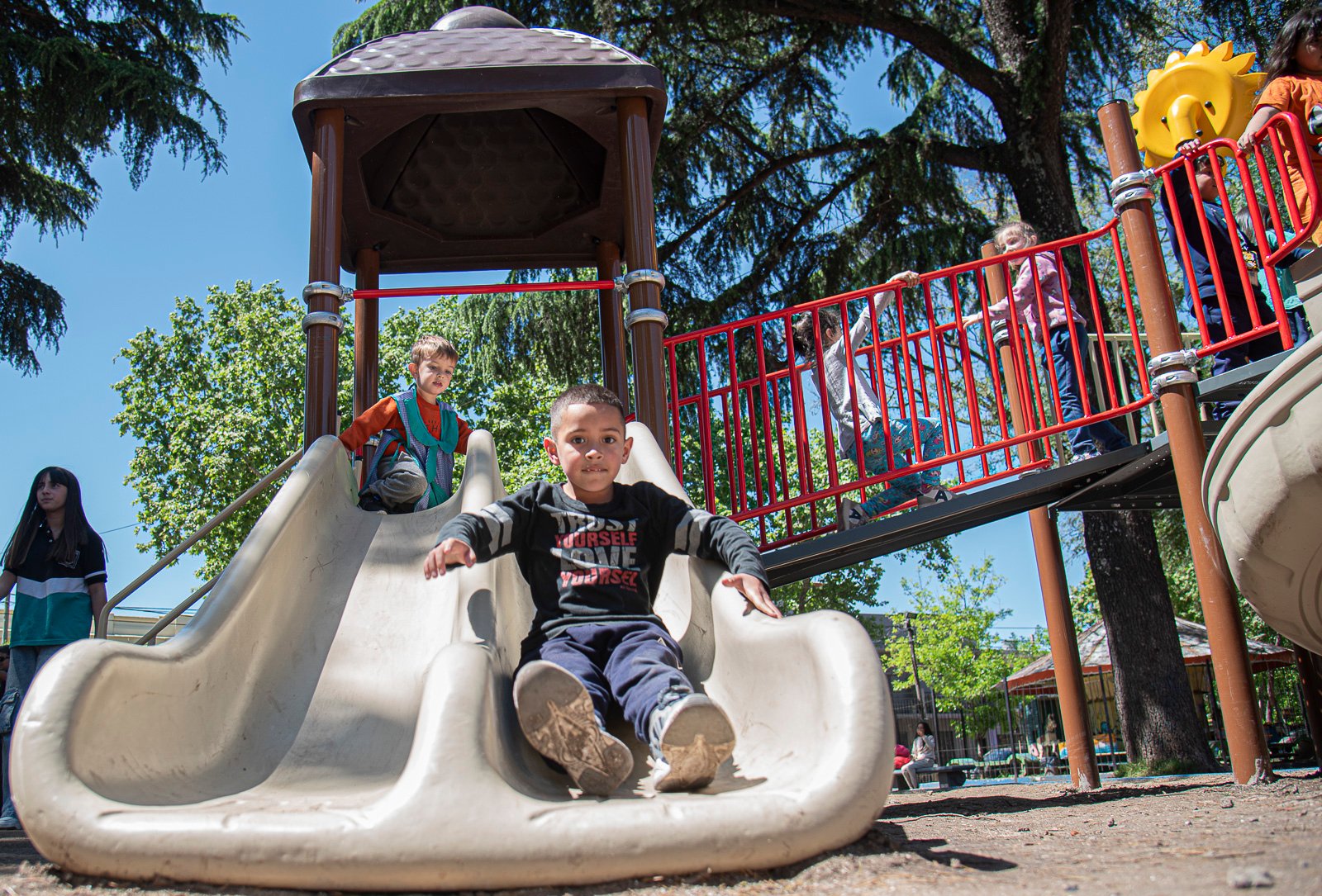 Por otro lado, en el patio de juegos infantiles se instalaron un mangrullo integrador, un mangrullo con toboganes, una calesita, dos pórticos de hamacas -con butacón integrador- y cuatro sube y baja simples.