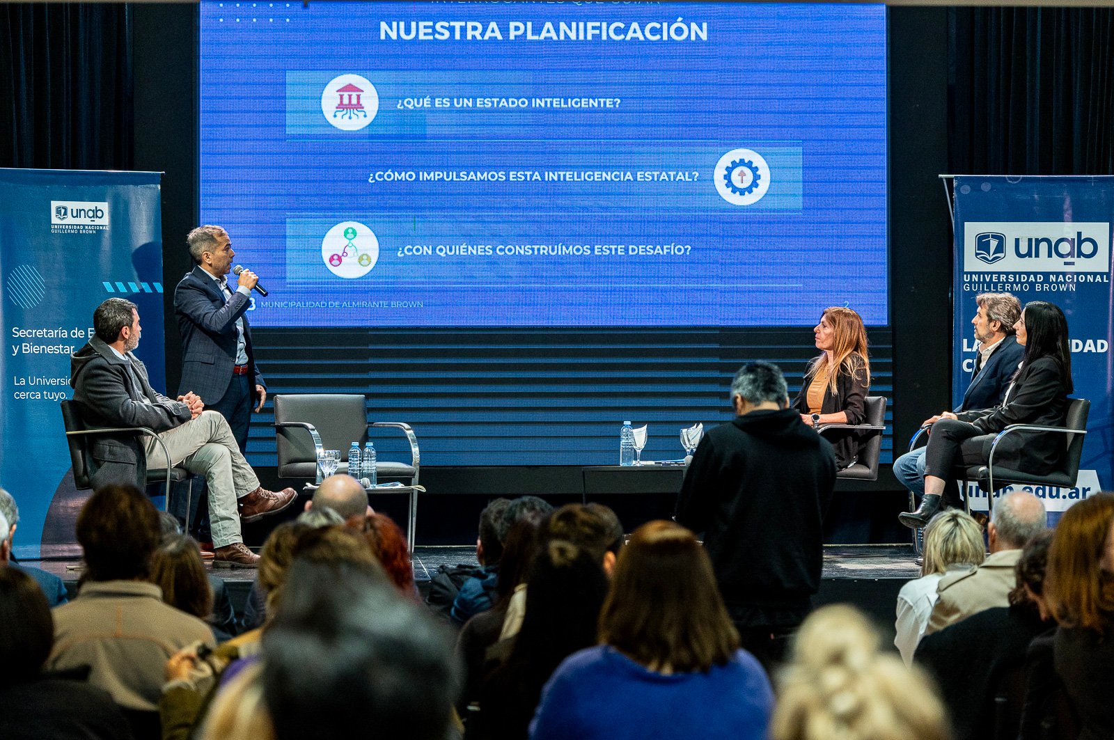 Durante el encuentro expusieron la subsecretaria de Gobierno Digital, Sandra D’Agostino; el coordinador de la Tecnicatura en Programación de la UNaB, Juan Manuel García Iannini; el secretario general del Municipio de Almirante Brown, Alan Grin; y Mónica Giglio y Lucas Lanza, representantes de las empresas Bolt Tech y Smarcity.
