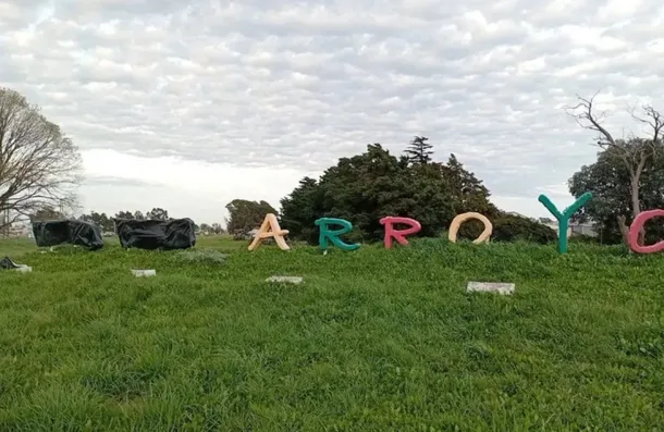 El conductor de Argenzuela compartió una imagen del cartel con el nombre de la localidad, en donde se observa que taparon las letras de la palabra “Tres”.