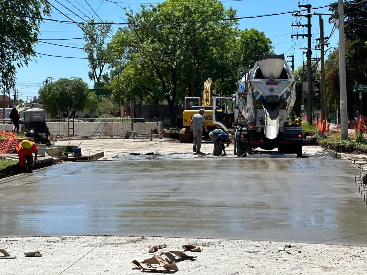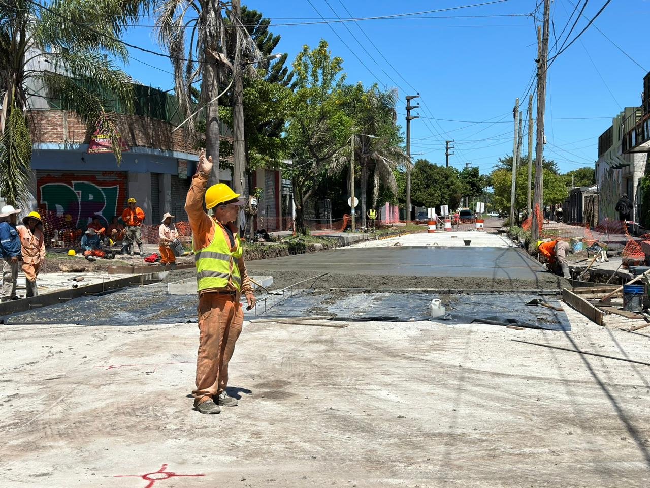 El Municipio de Almirante Brown informó que, en el marco del tramo final de la obra del Paso Bajo Nivel de Rafael Calzada, se está llevando adelante la repavimentación con hormigón de la calle Presidente Juan Domingo Perón.