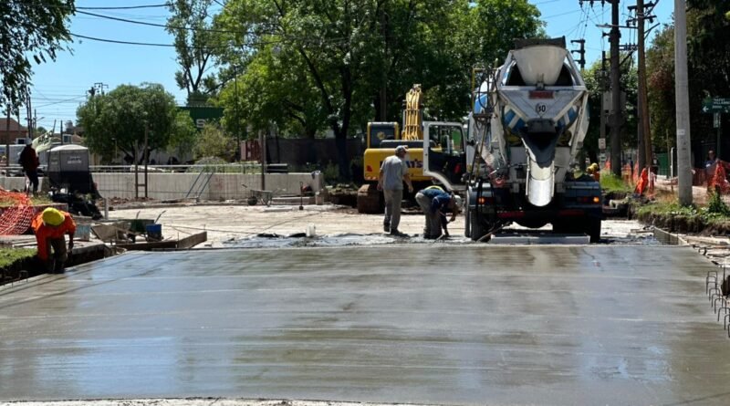 REPAVIMENTAN CON HORMIGÓN LA CALLE PRESIDENTE PERÓN, EN EL MARCO DE LA OBRA DEL PASO BAJO NIVEL DE CALZADA