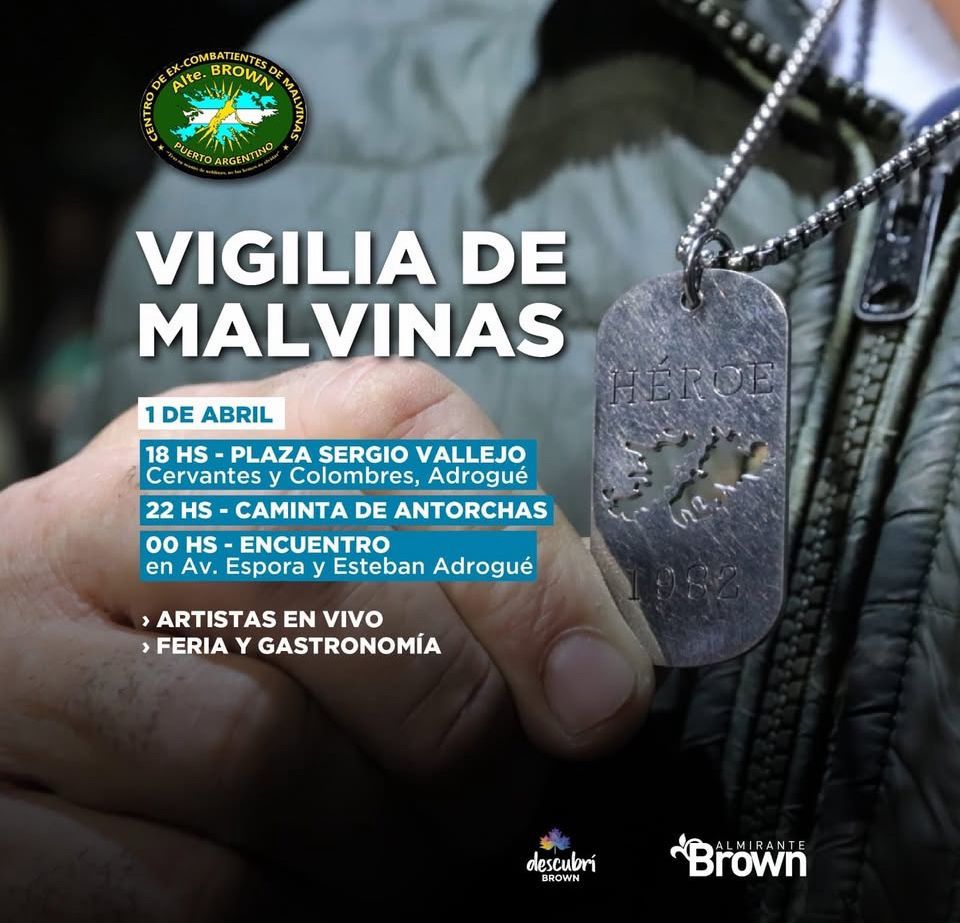 Más tarde, a partir de las 23 horas, se llevará adelante la Vigilia con la clásica caminata de antorchas de veteranos y familiares desde el Centro de Excombatientes “Puerto Argentino” hasta Diagonal Brown y Avenida Espora donde a la medianoche se efectuará un acto de reconocimiento a nuestros héroes brownianos.